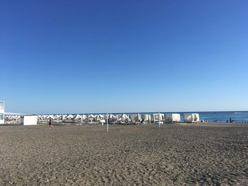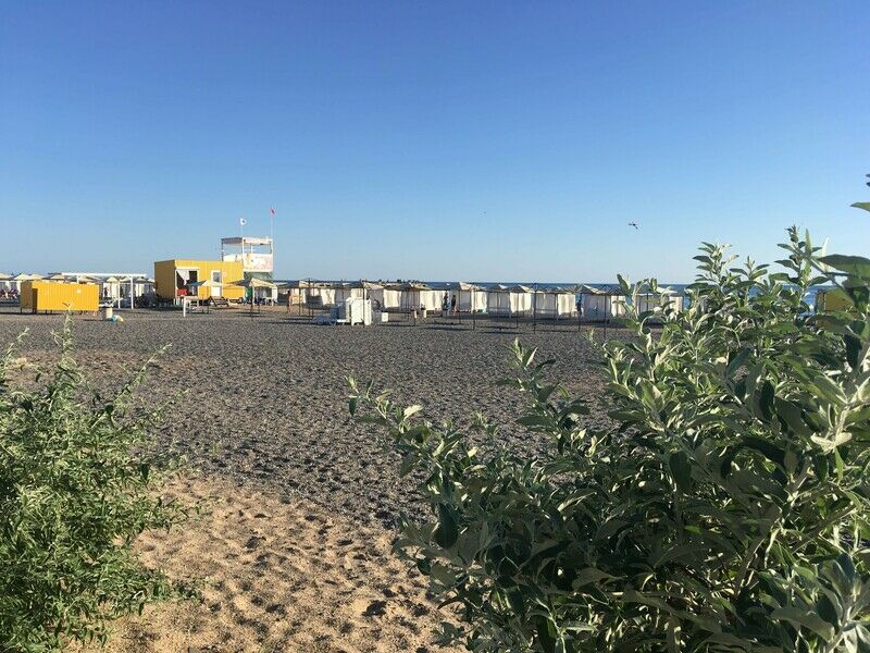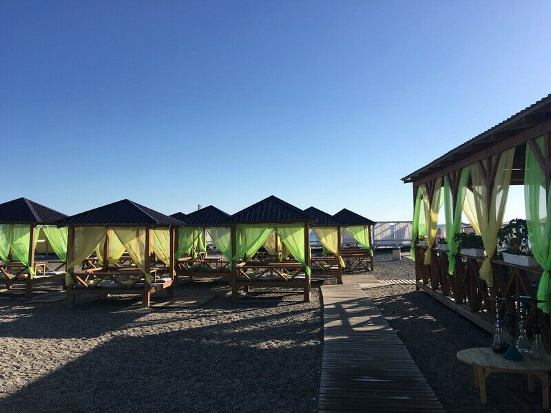 Инфраструктура: лежаки, зонтики, шезлонгиПесчаный пляж