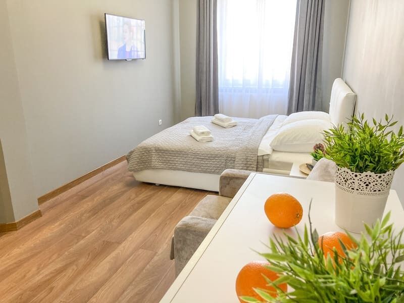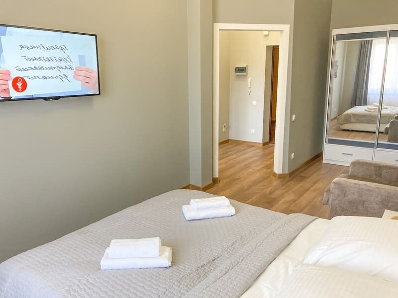 Новые просторные однокомнатные, с двумя спальнями и двухуровневые апартаменты в центре города Пионерский, всего в 150 метрах от моря. Апартаменты находятся в апарт-отеле на центральной улице Комсомольской, в здании МФЦ, где расположены кафе, рестораны, магазины и мини-рынок. Всего 3 минуты ходьбы до спуска к морю, 500 метров пешим шагом до междугороднего железнодорожного вокзала.