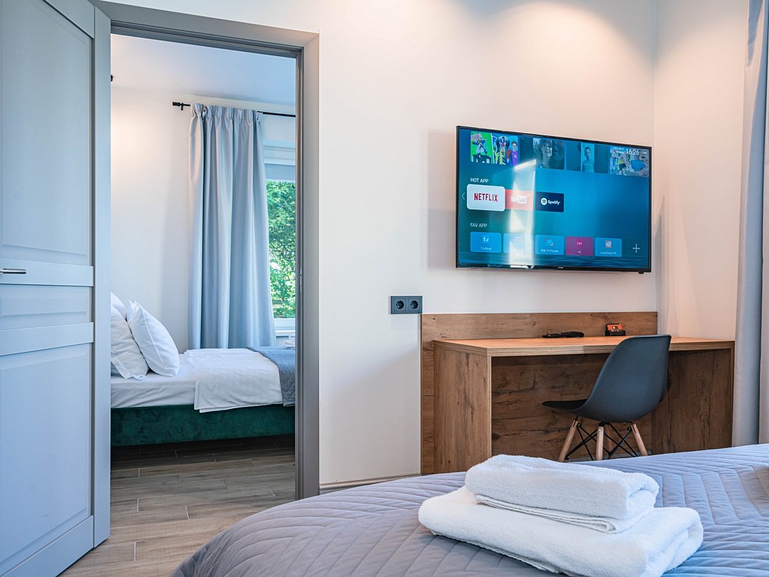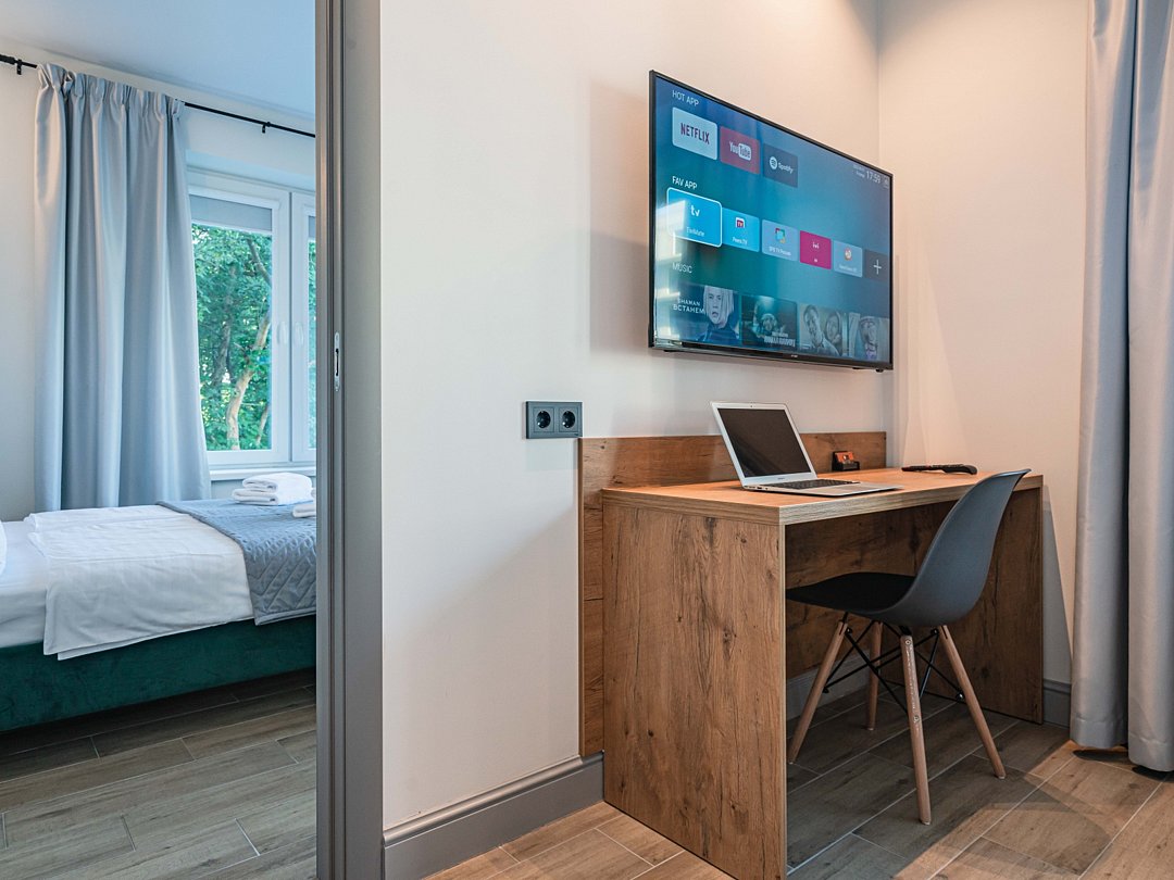двуспальные апартаменты с террасой, с панорамным видом на море, каждую минуту, проведенную в Baltic Apart, Вы будете наслаждаться целебным воздухом Балтийского моря, в спальне или на террасе, летом или в межсезонье, Вы найдете незабываемые впечатления, которые люди ищут по миру, на расстоянии 30-50 минут автотранспортом или электропоездом Вы найдете уникальные достопримечательности Кёнигсберга. Мы постарались сделать всё для Вашего комфортного отдыха, надеемся, что наш дом станет и Вашим любимым местом отдыха. Когда бы Вы ни приехали на Балтику, в «Baltic Apart» Вы всегда почувствуете дыхание этого удивительного моря и увидите его настроение из прямо из панорамных окон или за сидя за столиком на просторной террасе.Парковка на территории, Авто- и Ж/Д вокзалы в 7 минутах ходьбы, по предварительной заявке возможно предоставление профессионального гида с автомобилем! К Вашим услугам голосовой помощник Алиса.В номере