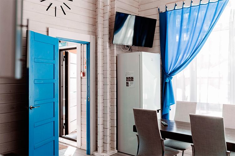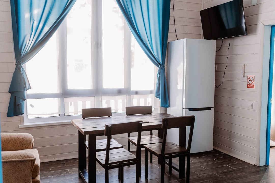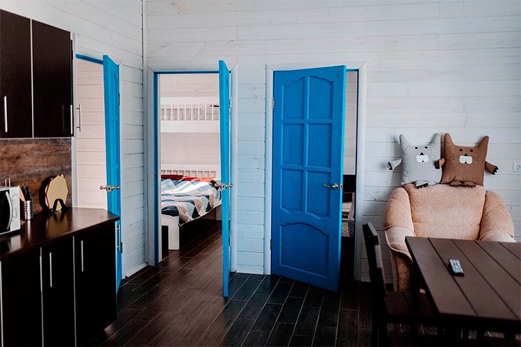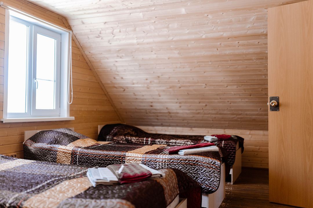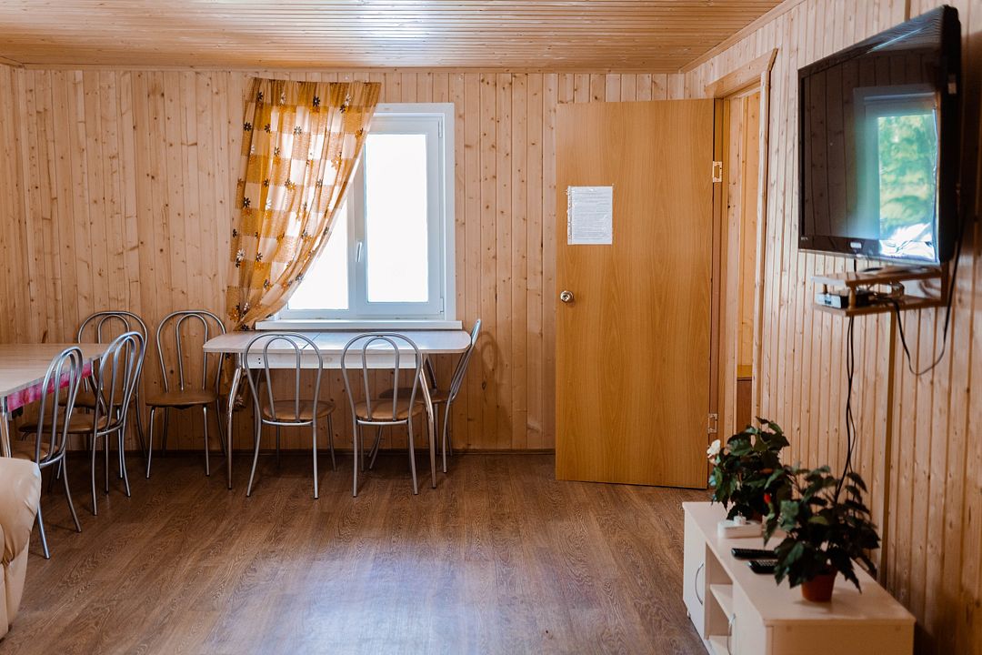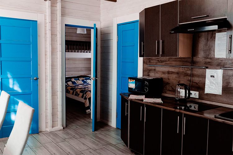 Дом гостиничного типа рассчитан на размещение до 20 человек. Внутри имеется 7 спален, в которых могут разместиться 2, 3, 4 или 5 человек. Кроме того, в доме есть уютная кухня-гостиная и полностью оборудованный санузел.
