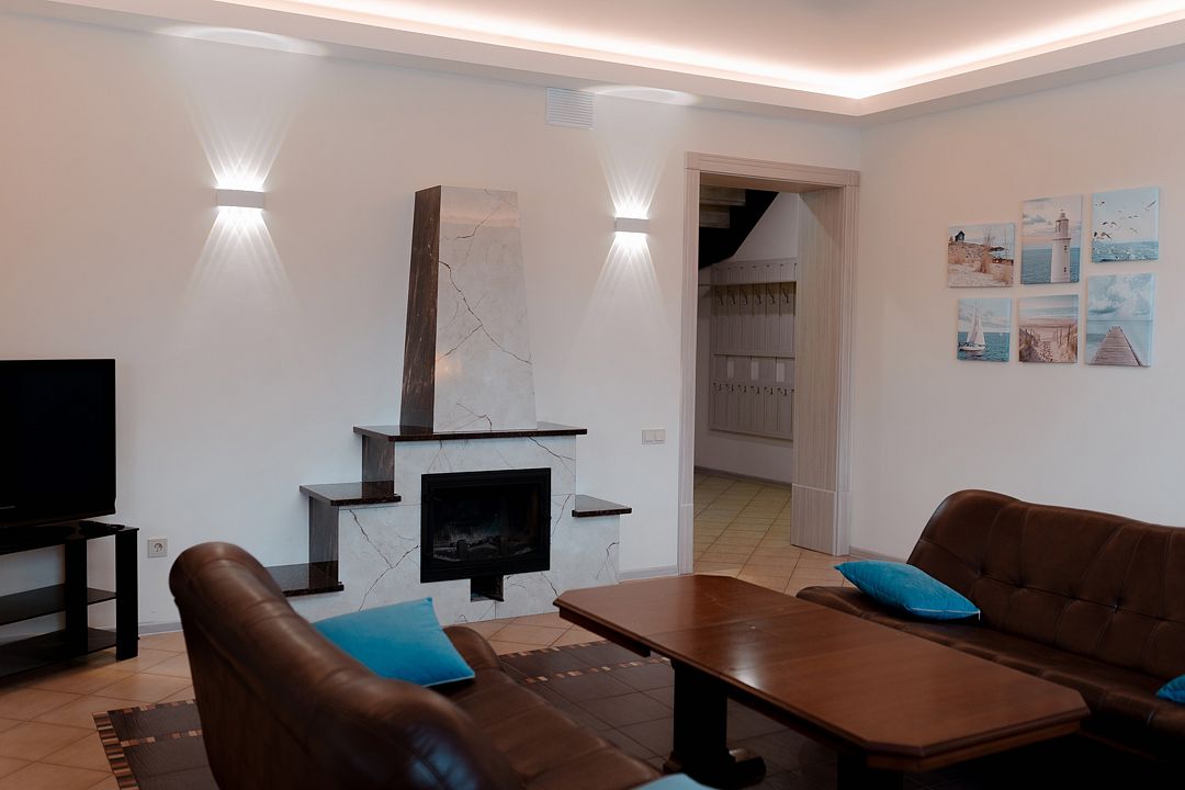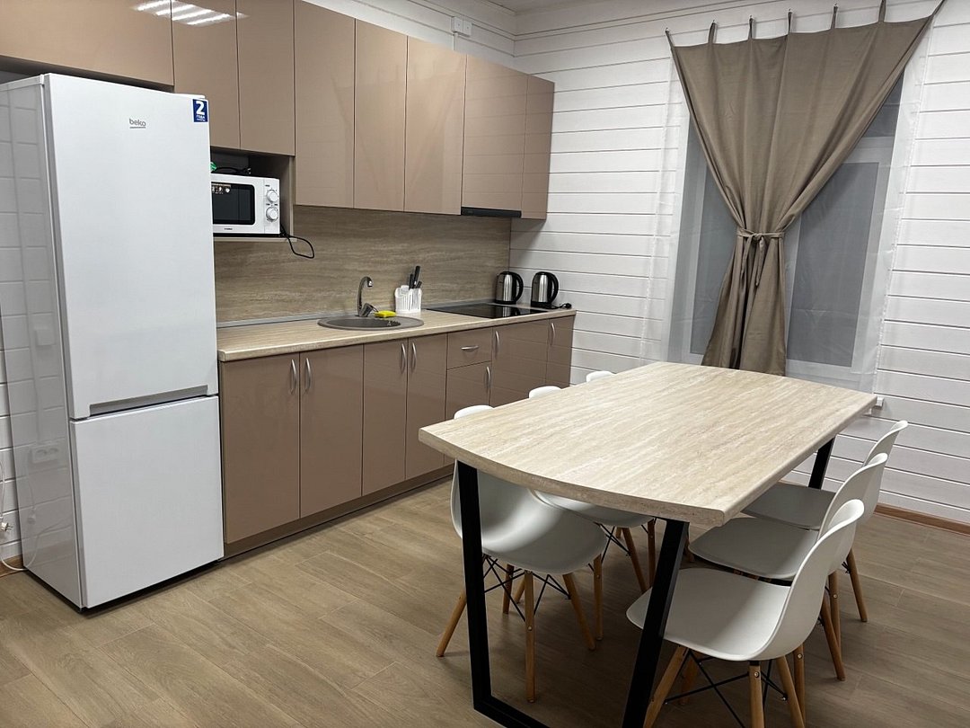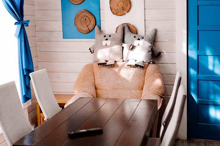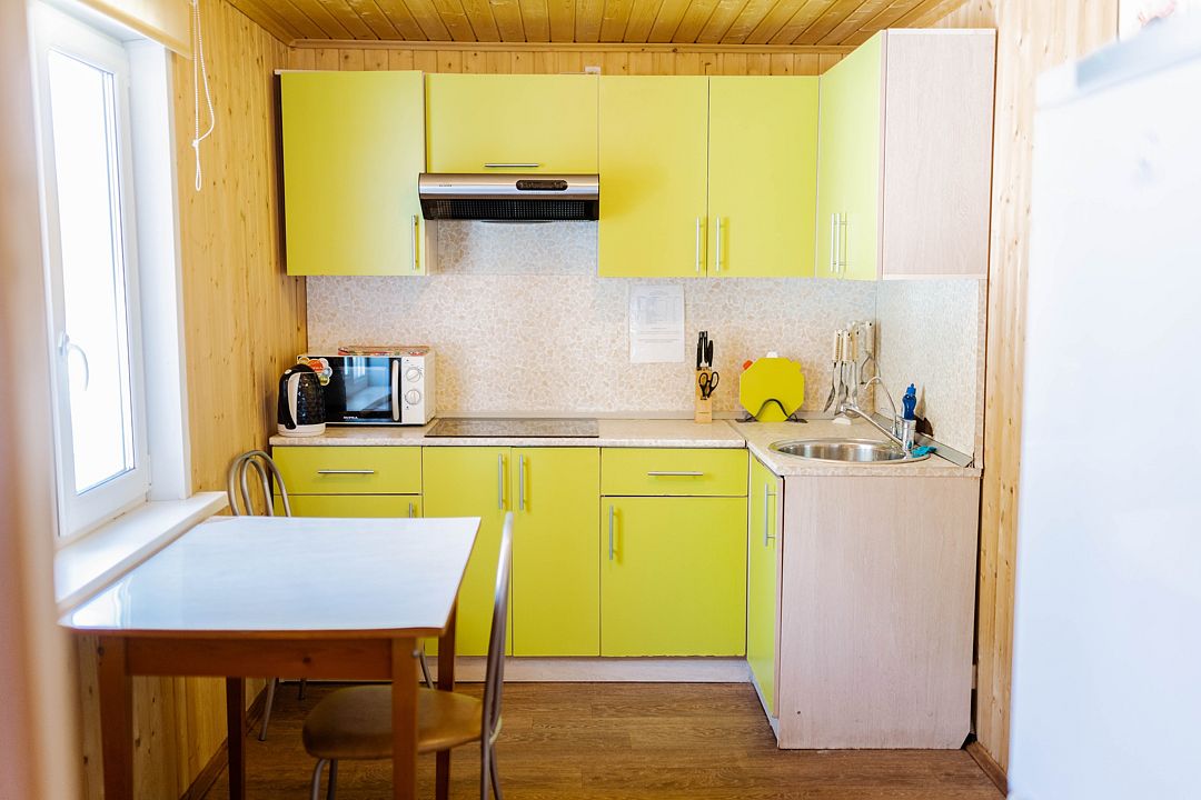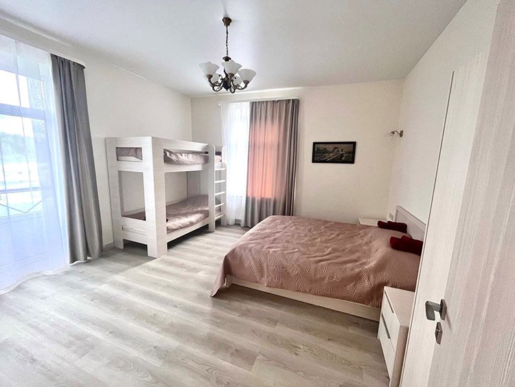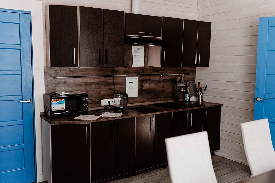 Дом гостиничного типа рассчитан на размещение до 20 человек. Внутри имеется 7 спален, в которых могут разместиться 2, 3, 4 или 5 человек. Кроме того, в доме есть уютная кухня-гостиная и полностью оборудованный санузел.