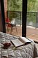 Внутри двуспальная кровать 180 см, постельное белье и полотенца, комод, тумбочки, вешалка для одежды, садовая мебель (2 кресла и столик), светильник, чайник, чашки, посуда одноразовая, мангал.