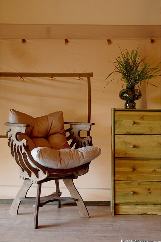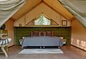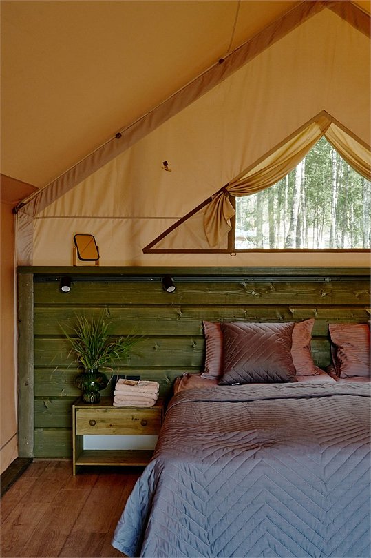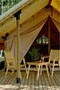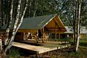 Сафари-палатка установлена на деревянный настил, комплектуется прибором отопления (обогреватель).