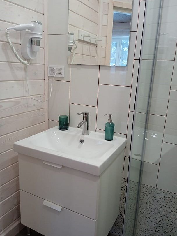 Инфраструктура: обливное ведро, душ, березовые веники, халатыВместимость бани до 8 человек, если компания больше, взимается дополнительная плата 500 ₽ за каждого дополнительного человека за каждые 2 часа.
