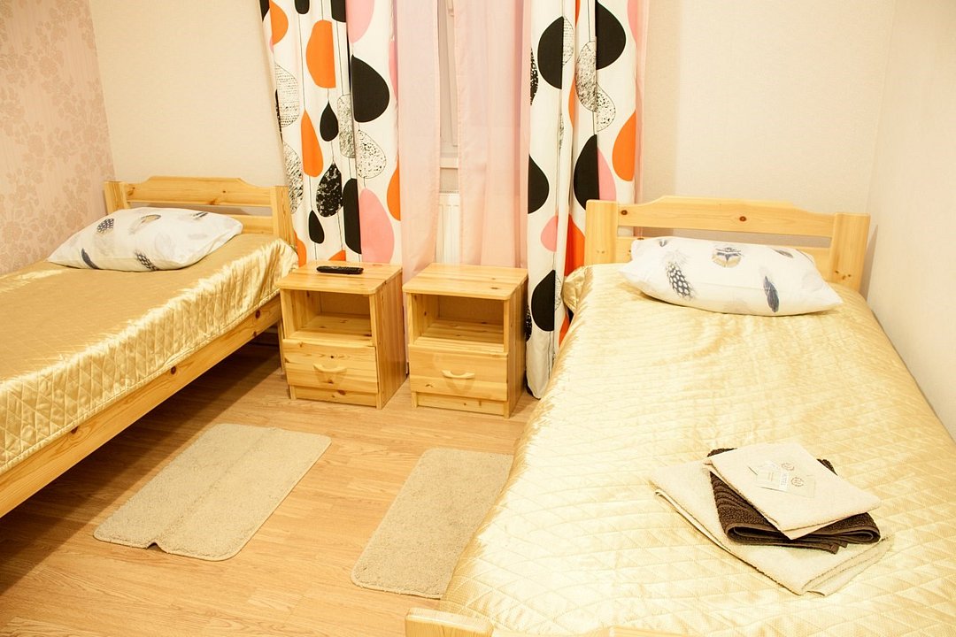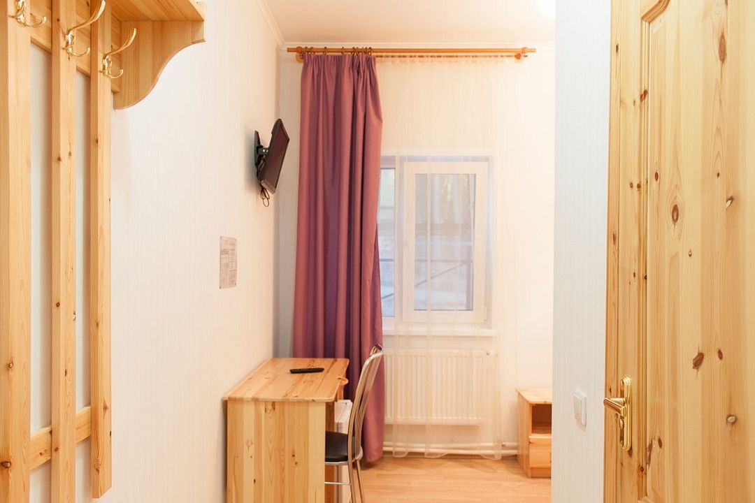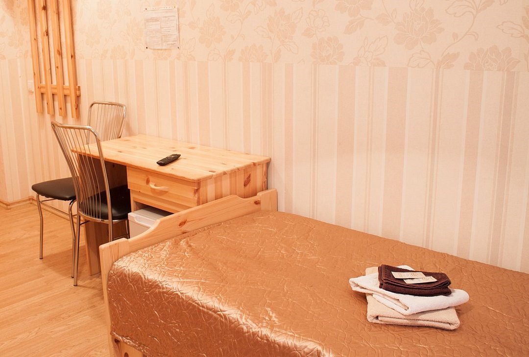 Уютный номер категории "Эконом" предлагает комфортное и доступное жилье для тех, кто ценит простоту и функциональность. Номера оформлены в светлых тонах, создающих атмосферу уюта и расслабления. В каждом номере есть две односпальные кровати, стол и стулья, а также мини-холодильник для ваших удобств.