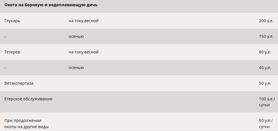 Площадь угодий 150000 гектар. В них имеется до 28 глухариных токов и 25 тетеревиных. Специалисты туркомплекса помогут разделать и приготовить званый ужин.
