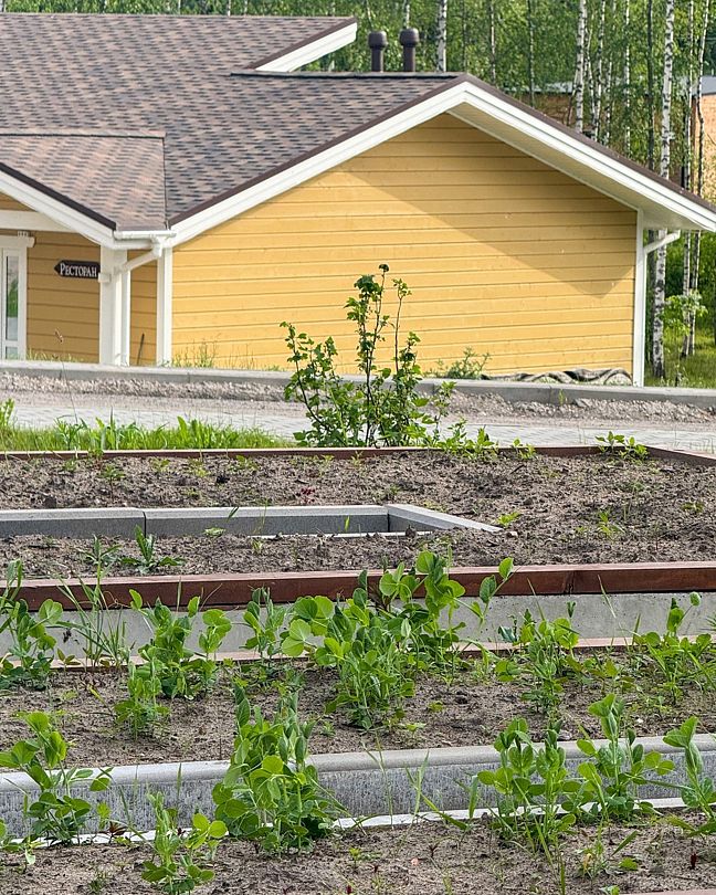 Ежегодно на территории комплекса «Белые мосты» выращиваются свежие овощи и зелень, контролируется их качество и экологическая составляющая.