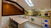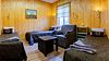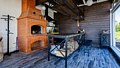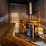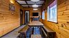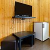 Всё остальное также на уровне. Прекрасная комната отдыха с обустроенной кухней и удобным столом для большой компании, отдельный санузел, раздевалка, телевизор и камин.