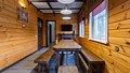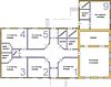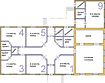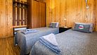 Двухэтажный коттедж. Первый этаж — баня. Второй этаж — жилое помещение из 3-х комнат. Вмещает 9 человек. По три в каждой комнате. У каждого этажа свой вход. Входы на этажи с разных сторон здания.
