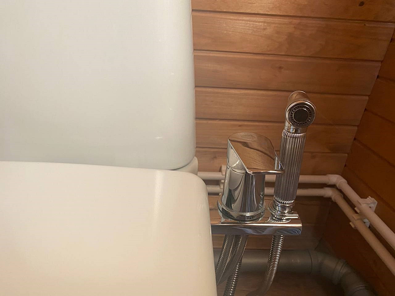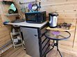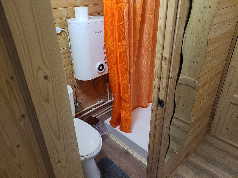 Несмотря на небольшую площадь, всего 8 м2, домик максимально полно и компактно оборудован всем необходимым для комфортного отдыха, ЗА ИСКЛЮЧЕНИЕМ ДУША.