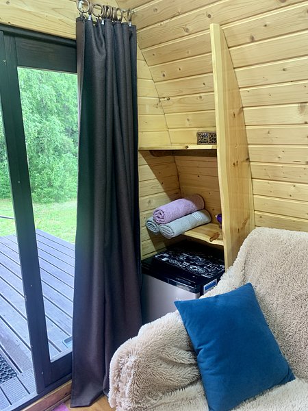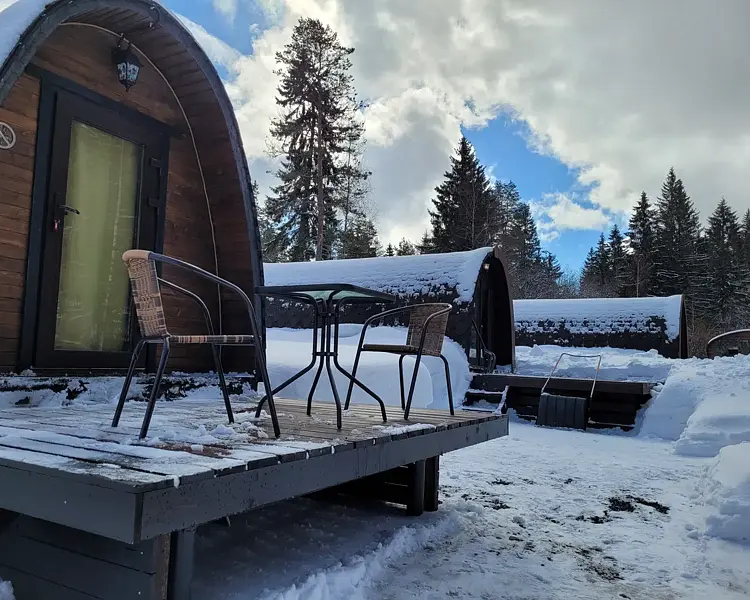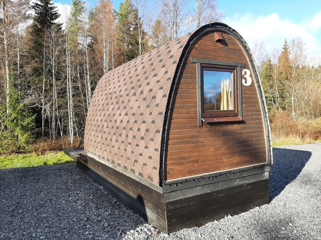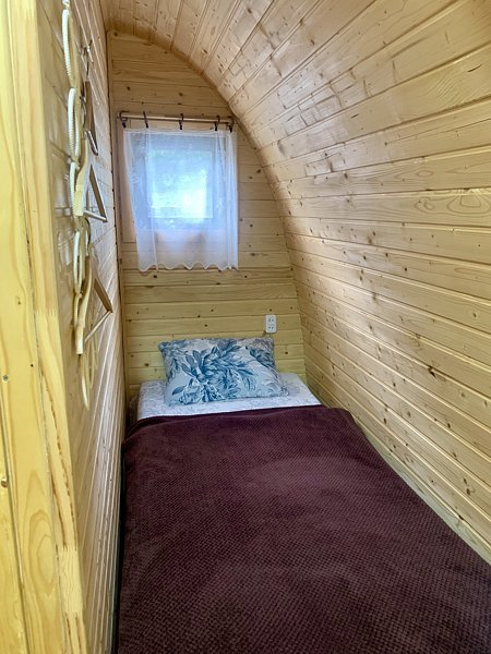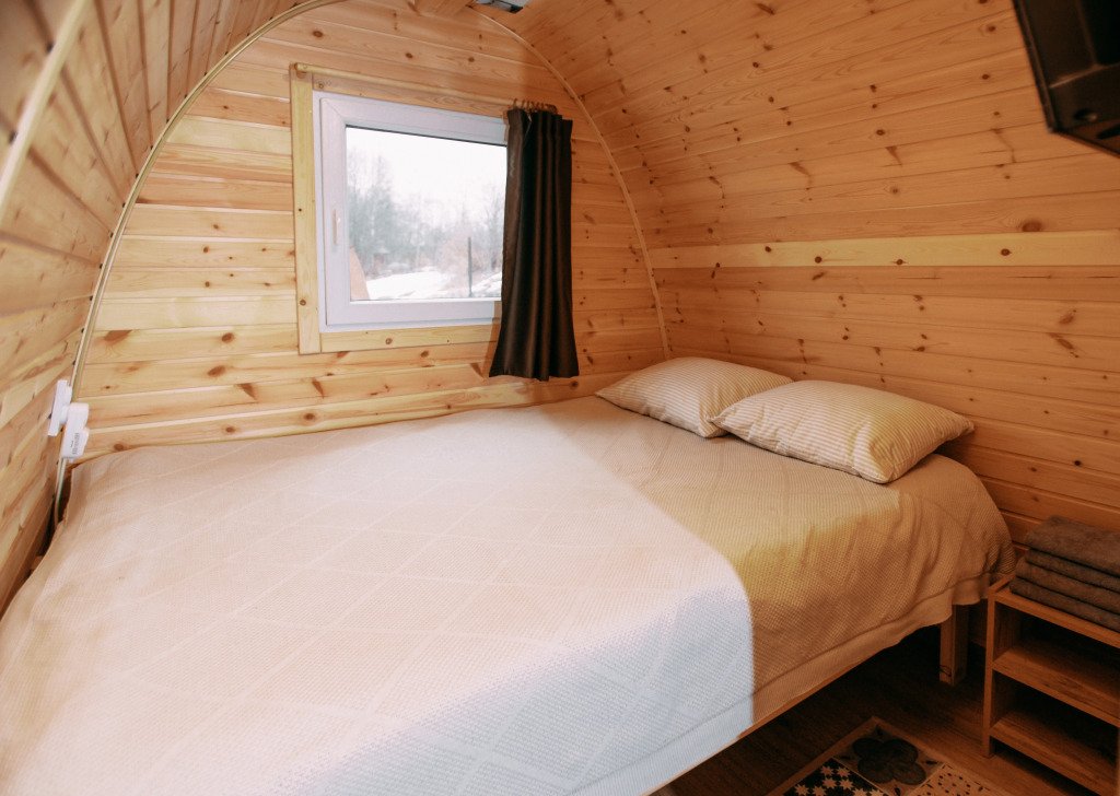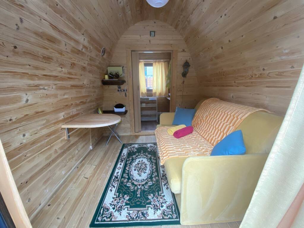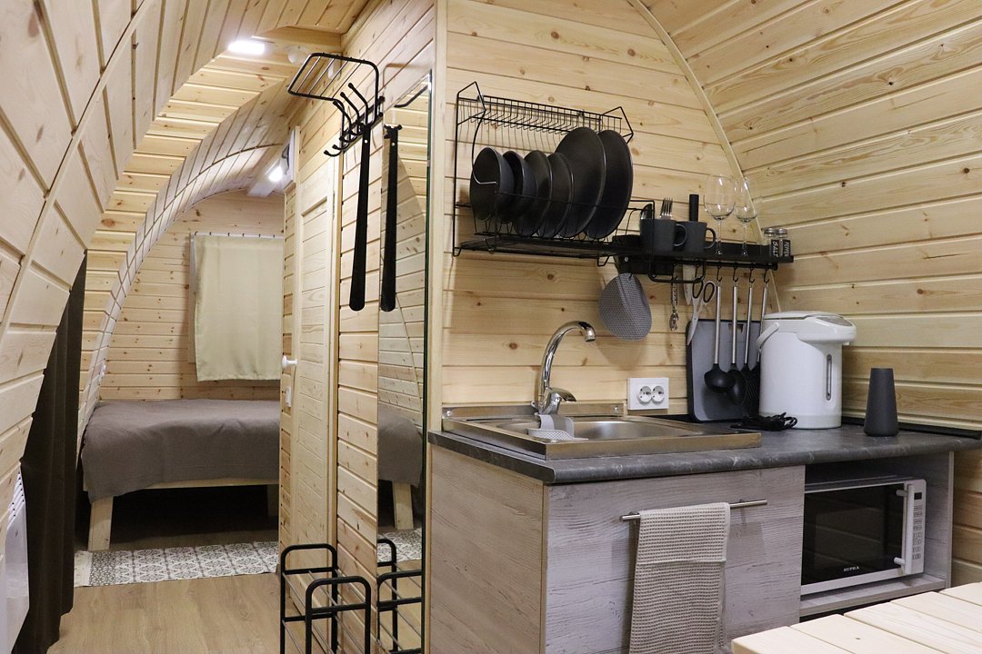 Небольшой арочный домик для отдыха с видом на лесной массив и отдельной террасой готов принять гостей по системе 1+1 (2 человека могут расположиться на удобном двуспальном диване (1400*2000) и использоваться как дополнительные спальные места при бронировании 3-х местного или 4-х местного домика.