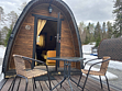 Домик выполнен полностью из дерева. На уличной террасе есть стол со стульями, где вы можете встретить новый или проводить уходящий день за чашечкой горячего чая или кофе.
