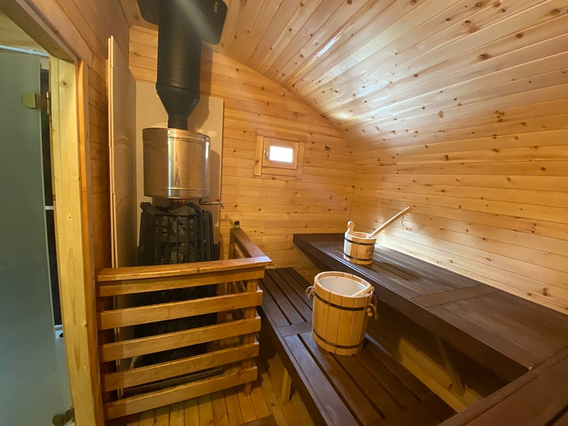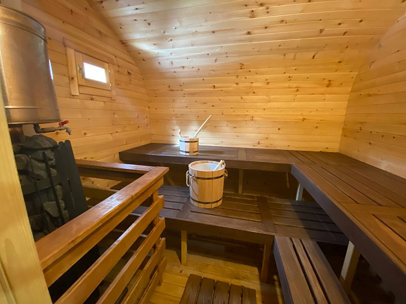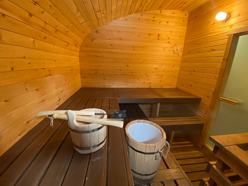 Время работы: до 23.00Кедровая баня с парилкой, душевой и комнатой отдыха. Вместимость до 6 человек.