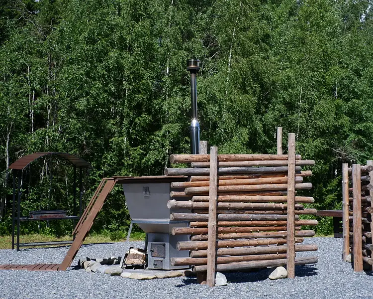 Сибирский банный чан — геотермальный источник рядом с вашим домиком. Вместимость до 4-х человек. Время парения — 2 часа. В стоимость входит пользование чаном, комплект простыней и полотенец.