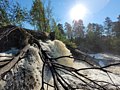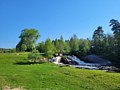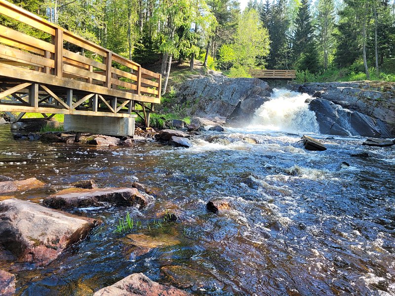 Читать полностьюЭто один из красивейших водопадов Северного Приладожья и имеет он богатую промышленную историю. С 1725 года здесь стоял лесопильный завод. Спустя век, в 1825 году завод сгорел. В 1837 году на месте водопада Всеволод Омельянов, владелец питкярантских шахт, построил плавильный завод для обработки руд. Завод был представлен плотиной, обогатительной фабрикой, плавильней и другими сооружениями. Строения были деревянными, поэтому, на данный момент, от них не осталось практически ни следа. Лишь рядом с небольшим островком внизу водопада при низкой воде виднеются сгнившие сваи — это остатки обогатительной фабрики.