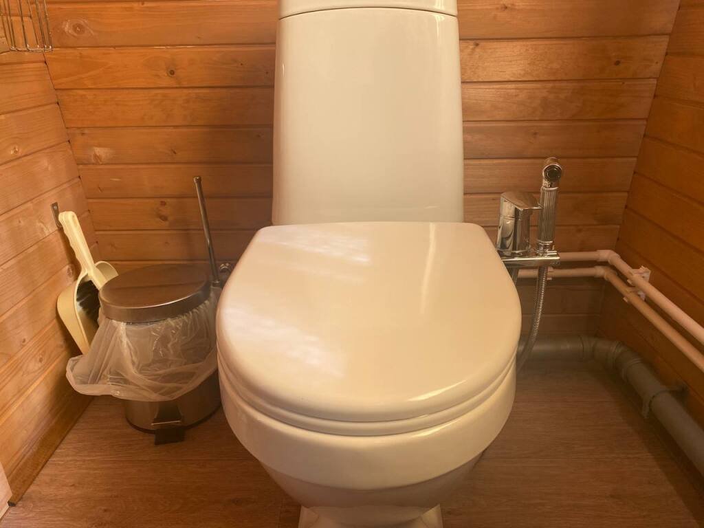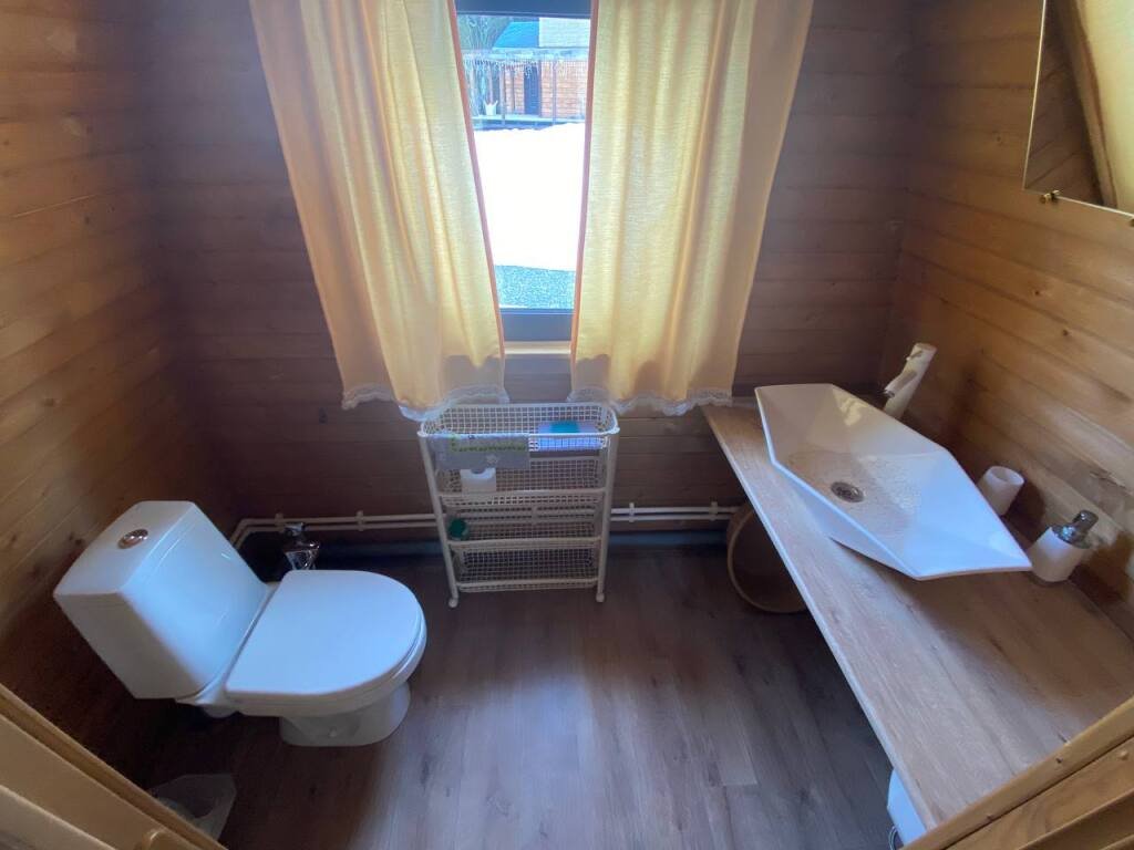 Домик выполнен полностью из дерева. На уличной террасе есть стол со стульями, где вы можете встретить новый или проводить уходящий день за чашечкой горячего чая или кофе. Рядом с домиком установлен мангал.