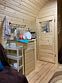 Несмотря на небольшую площадь, всего 15 м2, домик максимально полно и компактно оборудован всем необходимым для комфортного отдыха.