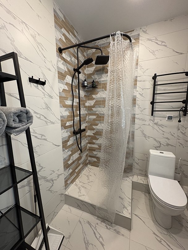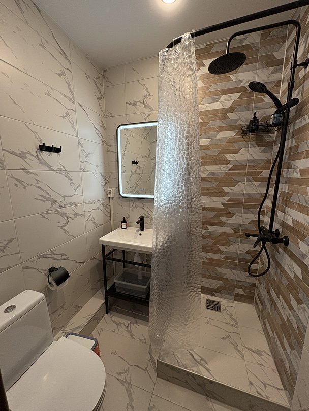 - санузел с душем, горячая вода