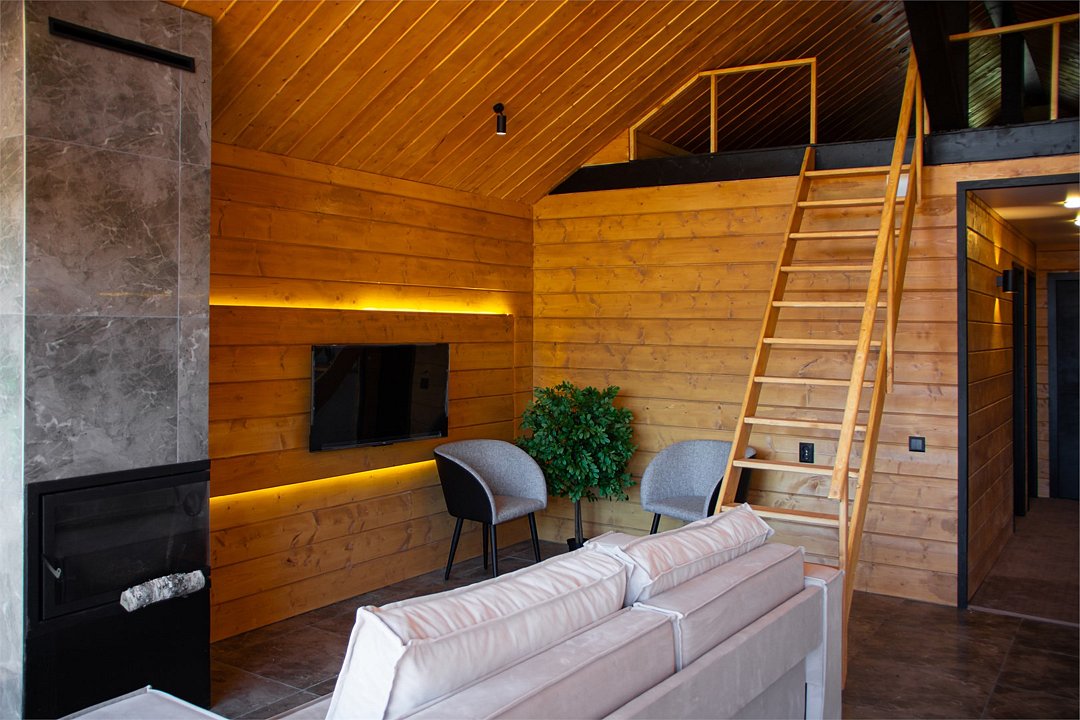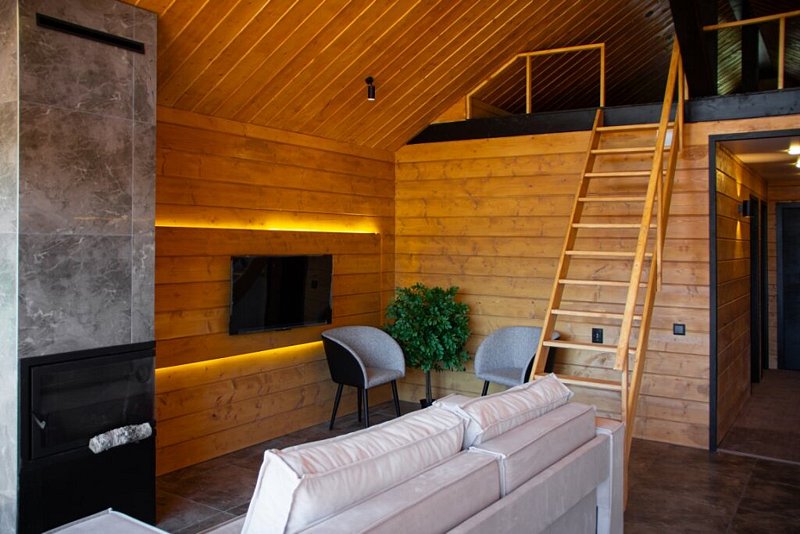 Большой дом на 2 спальни с камином, сауной и чаном (6+2)