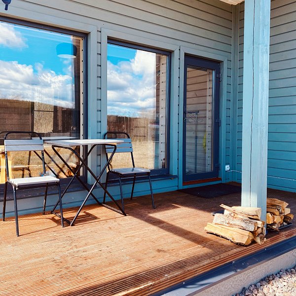 Шестиместный дом с большой террасой, банным чаном и сауной