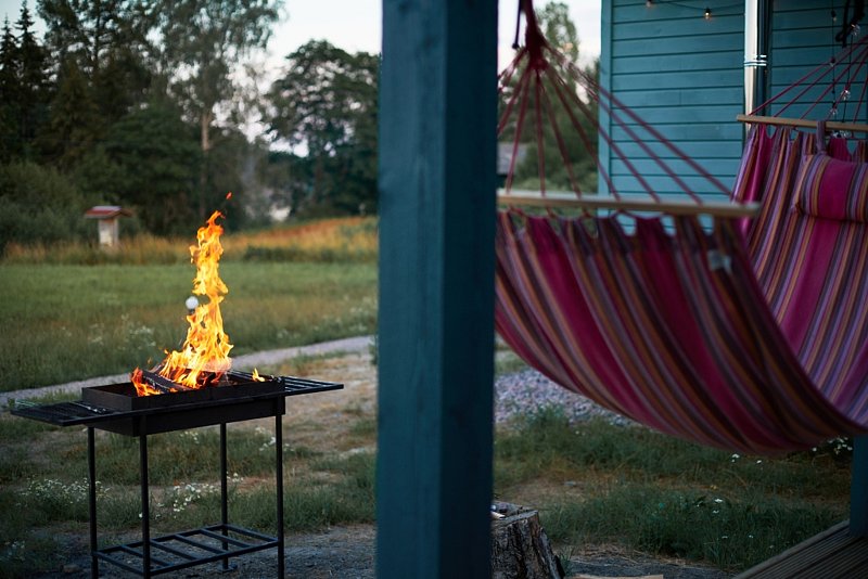 На территории каждого дома оборудована мангальная зона с принадлежностями для барбекю, гамак и банный чан, доступный за дополнительную плату.