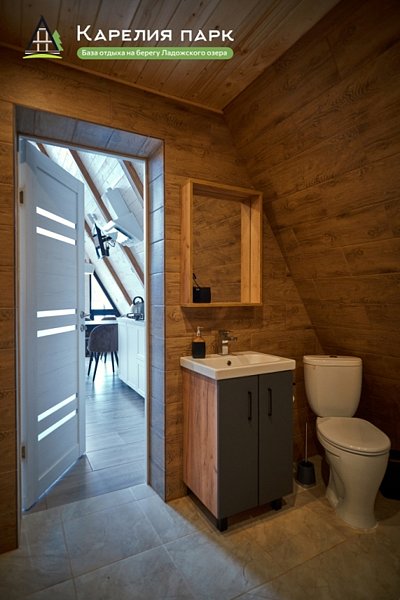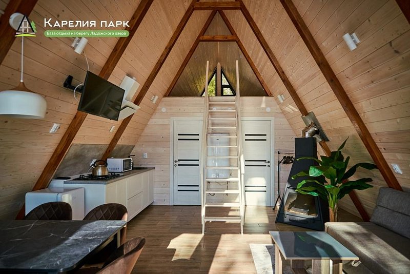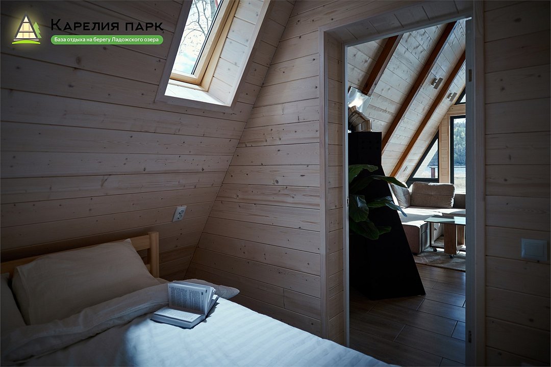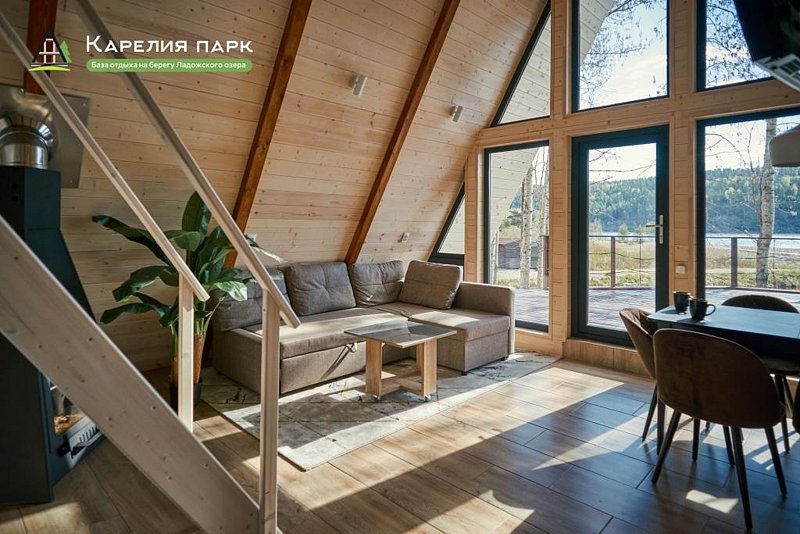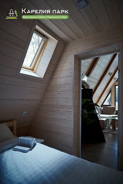 В доме есть: - Огромная терраса - Камин - Сауна (включена в стоимость аренды домика) - 2 спальни, 2 спальных места на чердаке, двуспальный диван -кровать - Большие панорамные окна с видом на Ладогу - Перед домом у террасы установлен банный чан (растопка чана оплачивается дополнительно - 4000руб. за каждую растопку) Карелия Парк - это современные уютные коттеджи в скандинавском и альпийском стиле с большими, видовыми панорамными окнами. Первая линия Ладожского озера. Огромная территория для прогулок. В каждом доме есть жаркая сауна, большая кухня, скоростной интернет - все для комфортного проживания вашей семьи или компании друзей. Дома оборудованы террасой с видом на Ладожское озеро и высокую отвесную скалу Импилахти. Одно из красивейших мест Карелии. Домики расположены в одной минуте от берега и пирса. Есть все необходимое для рыбалки. Зима: прогулки на снегоходах, прогулки на аэролодке по Ладожским шхерам по льду, прогулки на снегоходах по сказочному зимнему лесу, зимняя рыбалка, прокат лыж и коньков. Лето: у нас в наличии 6 катеров и лодок для самостоятельного изучения Ладожского озера и его красивых окрестностей. С мотором и на вёслах. Все доступны для аренды без капитана. На территории каждого дома оборудована мангальная зона, гамак и принадлежности для барбекю. Также с нашего пирса ежедневно проводятся прогулки по воде – национальный парк Ладожские шхеры и на остров Валаам. Капитан везёт, показывает и рассказывает. В каждом доме есть возможность организации дополнительного места, так же возможно проживание с животным. Ждём вас, дорогие гости!Услуги и удобства