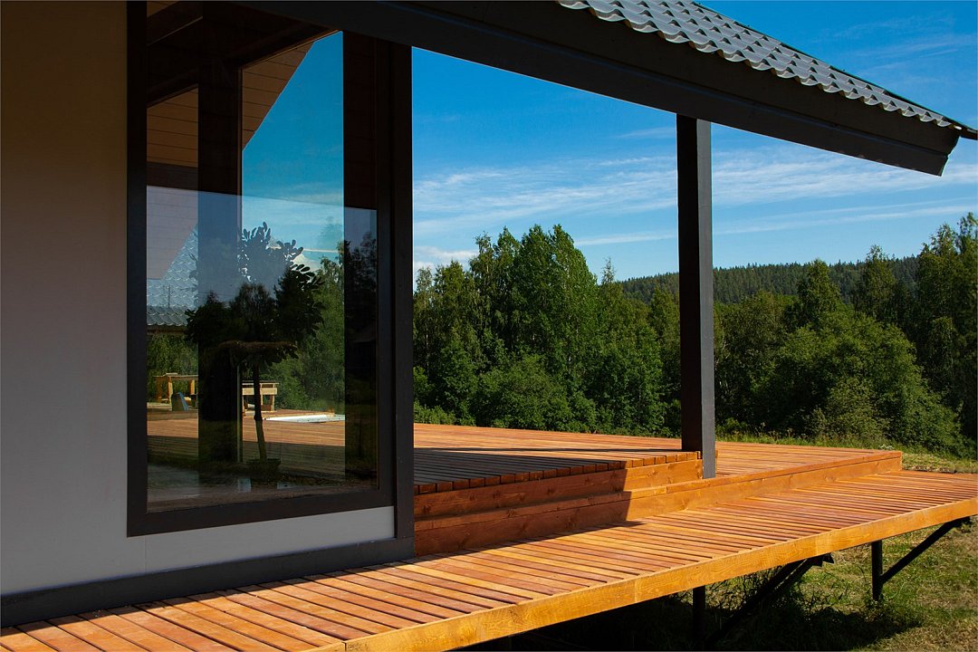 В каждом доме есть жаркая сауна, кухня, быстрый интернет, удобная мебель и терраса с видом на Ладожское озеро и отвесную скалу Импилахти — всё для того, чтобы отдых был полон удобства и красоты.