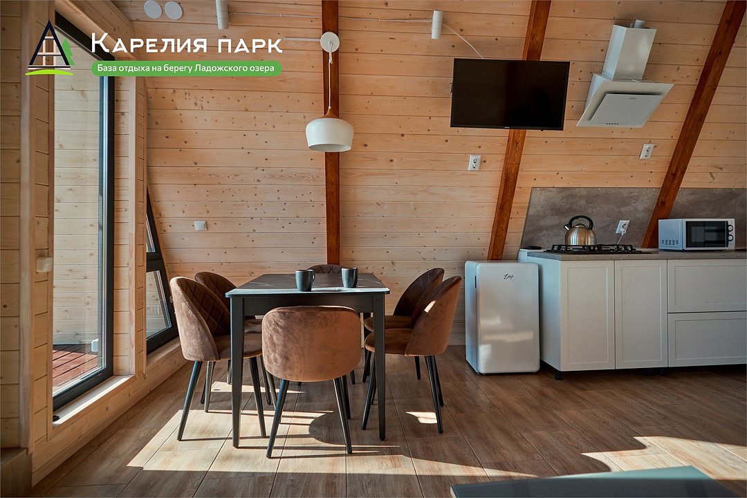 Карелия Парк - это современные уютные коттеджи в скандинавском и альпийском стиле с большими, видовыми панорамными окнами. Первая линия Ладожского озера. Огромная территория для прогулок. В каждом доме есть жаркая сауна, большая кухня, скоростной интернет - все для комфортного проживания вашей семьи или компании друзей. Дома оборудованы террасой с видом на Ладожское озеро и высокую отвесную скалу Импилахти. Одно из красивейших мест Карелии. Домики расположены в одной минуте от берега и пирса. Есть все необходимое для рыбалки. Зима: прогулки на снегоходах, прогулки на аэролодке по Ладожским шхерам по льду, прогулки на снегоходах по сказочному зимнему лесу, зимняя рыбалка, прокат лыж и коньков. Лето: у нас в наличии 6 катеров и лодок для самостоятельного изучения Ладожского озера и его красивых окрестностей. С мотором и на вёслах. Все доступны для аренды без капитана. На территории каждого дома оборудована мангальная зона, гамак и принадлежности для барбекю. Также с нашего пирса ежедневно проводятся прогулки по воде – национальный парк Ладожские шхеры и на остров Валаам. Капитан везёт, показывает и рассказывает. В каждом доме есть возможность организации дополнительного места, так же возможно проживание с животным. Ждём вас, дорогие гости!Услуги и удобства
