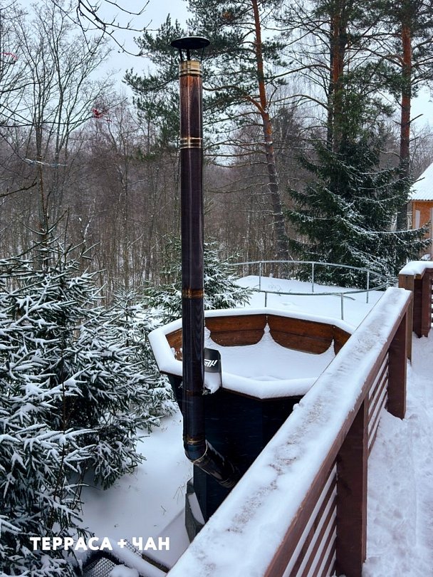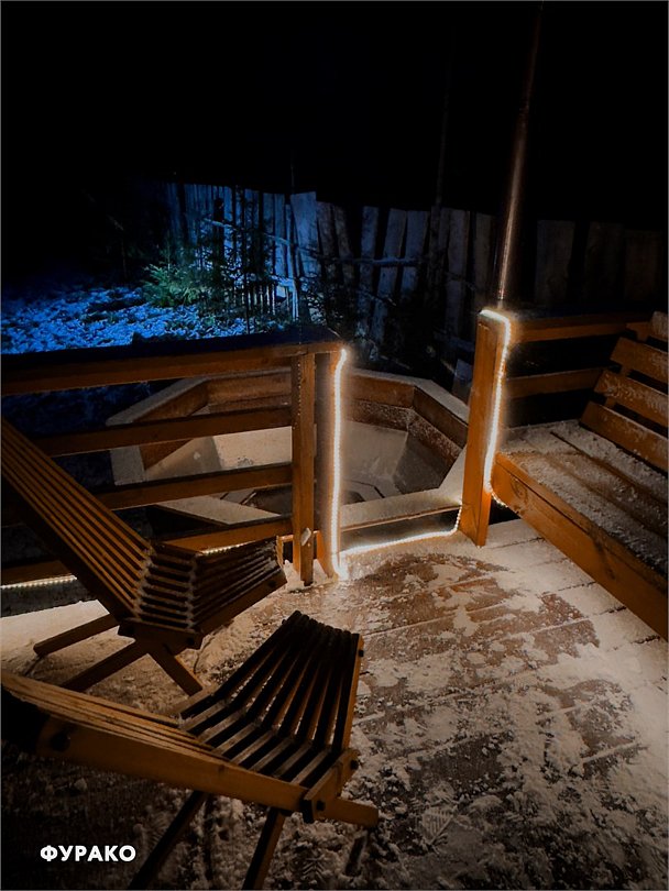 Рядом с каждым домиком вместимостью от 6 человек находится большой банный чан с горячей водой (чан нагревается около 4 часов и оплачивается отдельно).