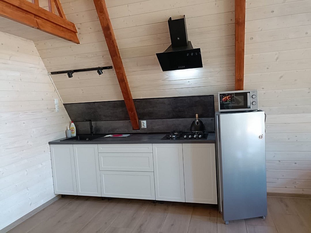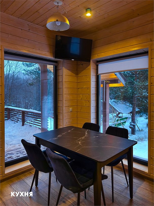 Wi-Fi, интернет, плита для приготовления пищи, микроволновая печь, санузел, теплый пол, двуспальная кровать, диван, стулья, обеденный стол, кухня, набор посуды, чайник, душ, кухонная посуда, стаканы, кухонная утварь, столовые приборы, туалет, мангал, принадлежности для барбекю, цифровое тв, телевизор с плоским экраном, мини-холодильник, мини-кухня, москитная сетка, теплые полы, вид на лес, фумигаторВ номере