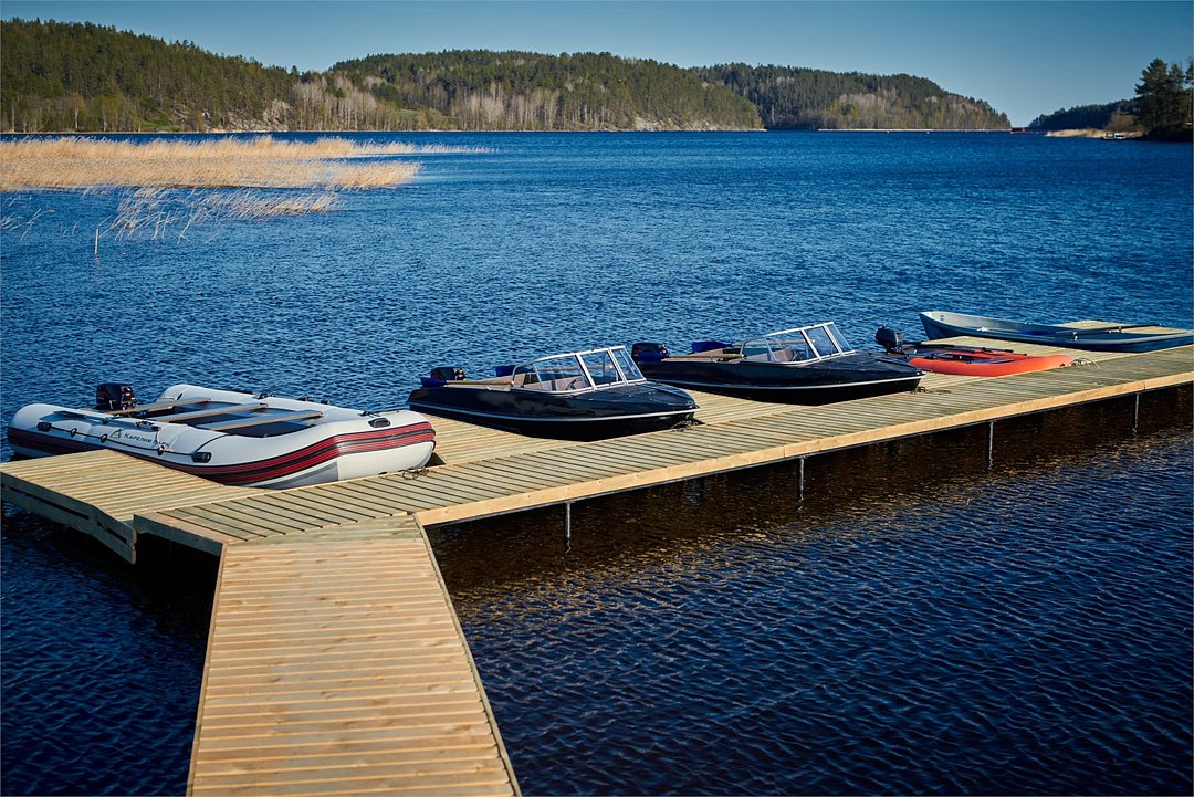 Он домиков до пирса всего 1 минута ходьбы. Есть всё необходимое для рыбалки, а также 6 лодок — с мотором и без — для самостоятельных прогулок по озеру.