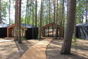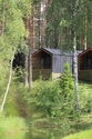 Домики размещены на обширной территории комплекса среди величественных сосен и близь водоёма.