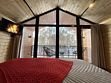 - Панорамные окна с видом на сосновый лес, реку и остров, где живут бурые мишки.