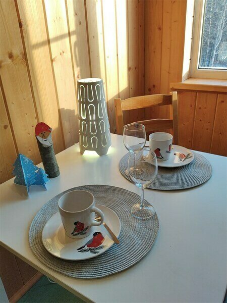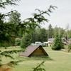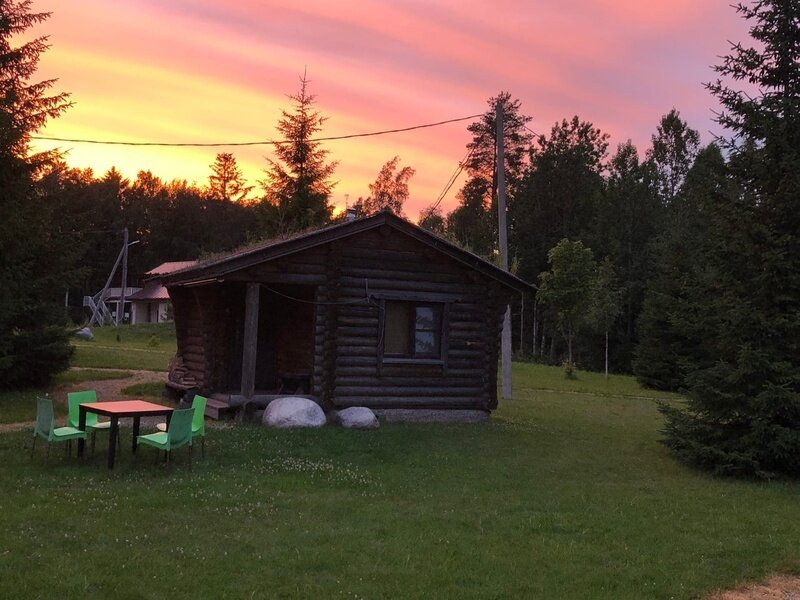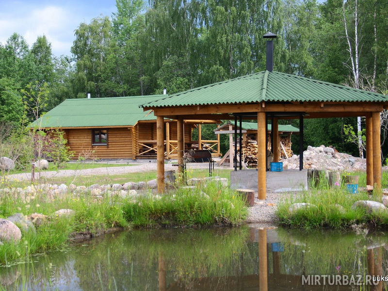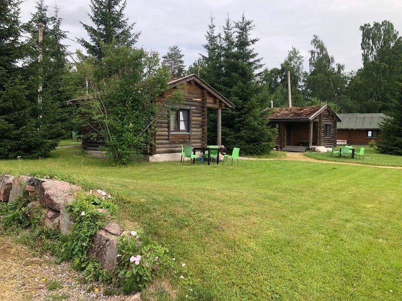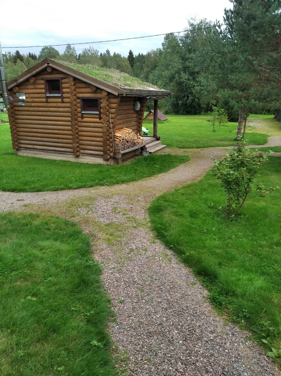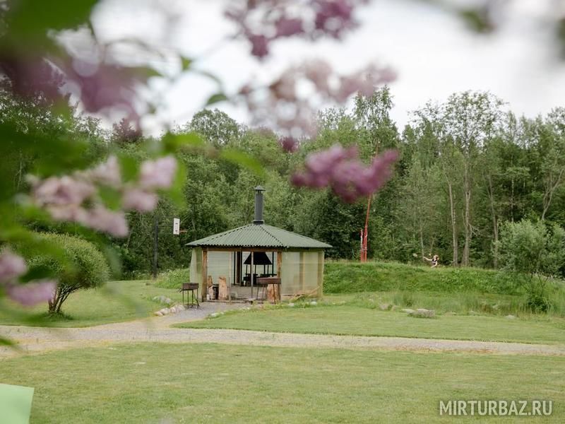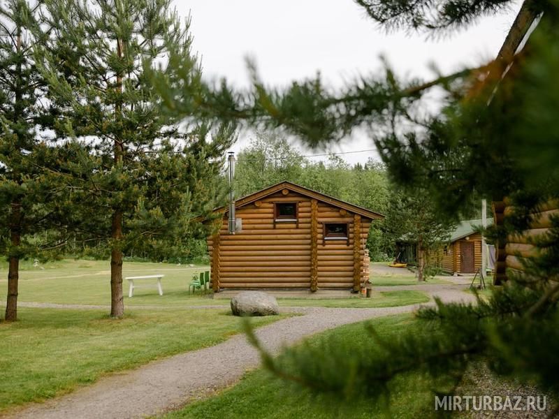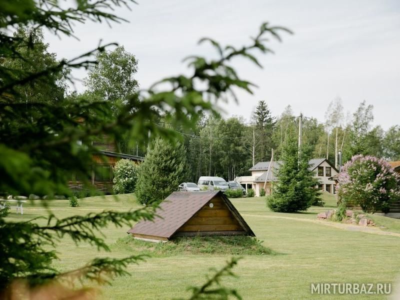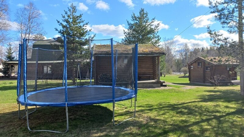 Вокруг природа, сама база ухоженная, растут елки и сосны, крыши домов покрыты дерном с травой - очень красиво смотрится. Для ребенка есть батут и качели с песочницей.