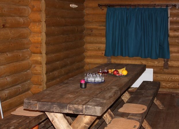 Небольшой бревенчатый домик на семью или компанию из 3-4 человек.