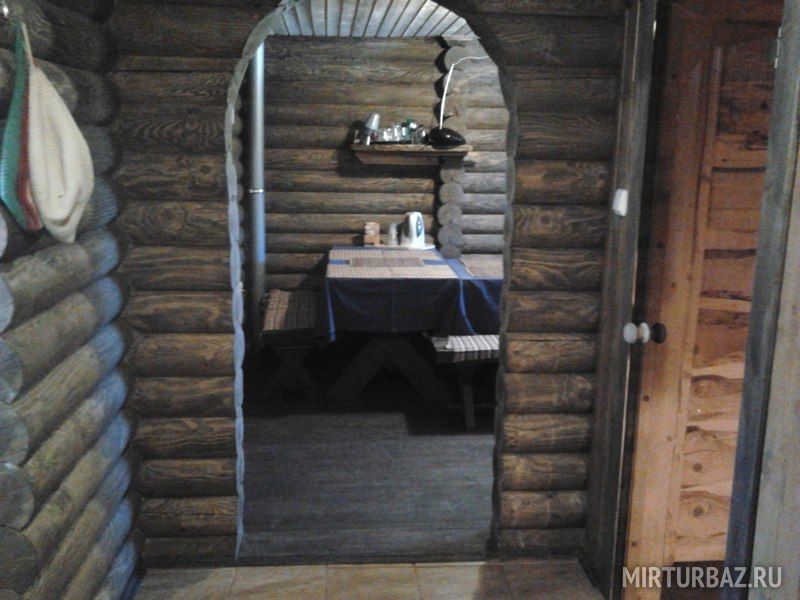 Русская баня с двумя парильными отделениями. Маленькая парилка вмещает 2-5 человек, большая — 7-10 человек. Для компаний до 15 человек могут быть протоплены обе парилки. В бане есть зал для чаепития, душ и обливные ведра. На улице — купель с ледяной водой.