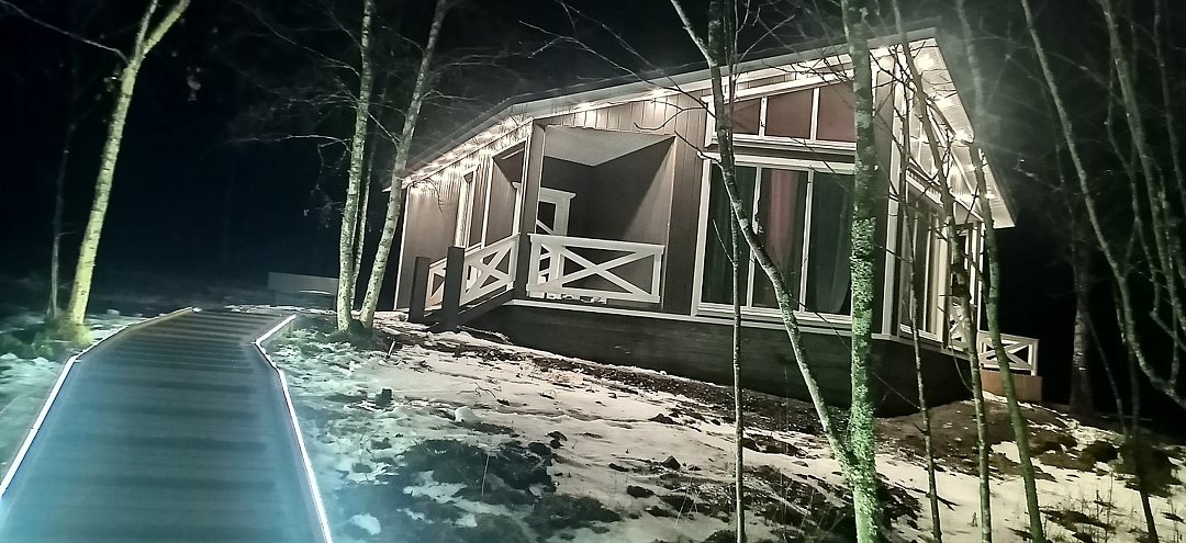 Семейный отдыхДостоинстваОчень хорошее расположение усадьбы, вокруг лес, в 200 метрах Ладожское озеро, вокруг есть глэмпинг, от туда можно уехать на экскурсии и прокатиться на зип-лайне. Очень гостеприимные хозяева, дома новые, все чистое, отличное место!!!