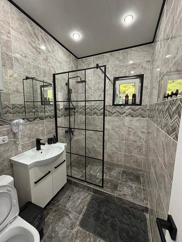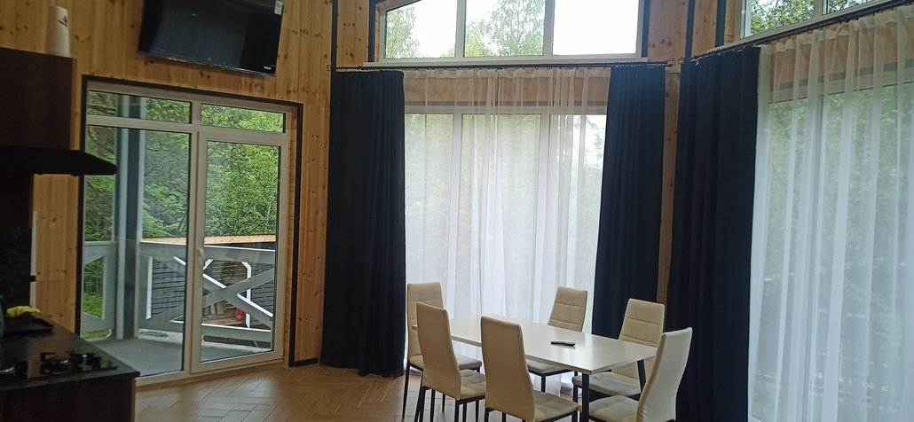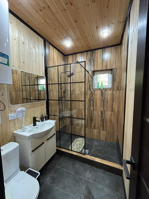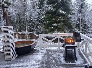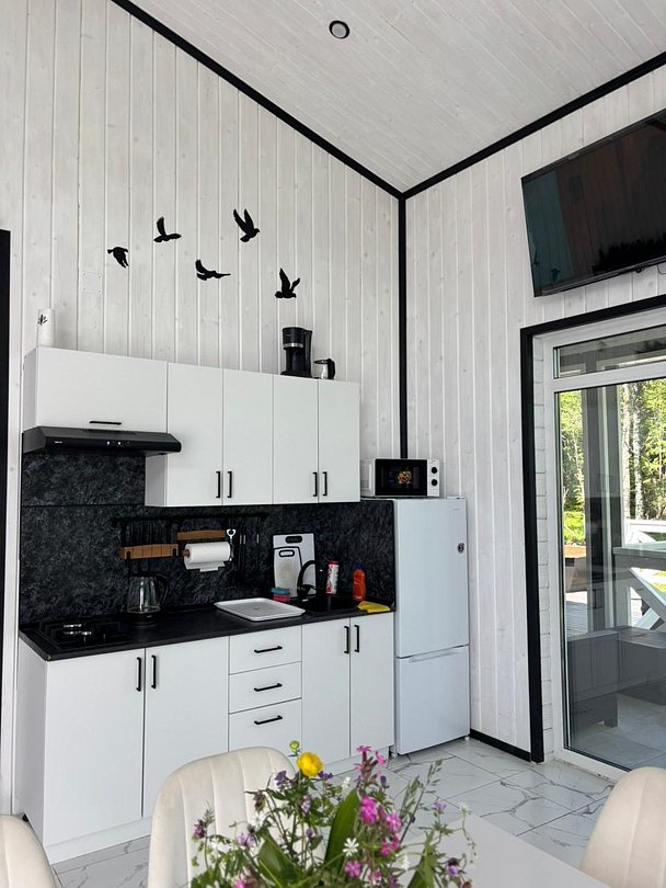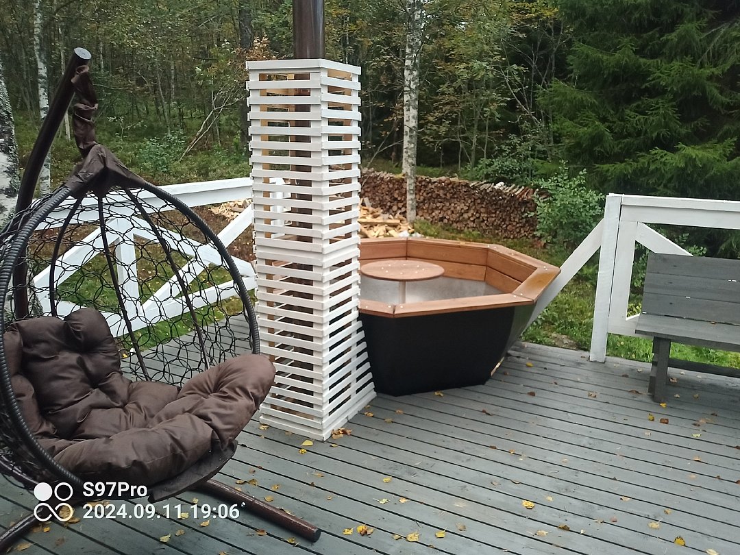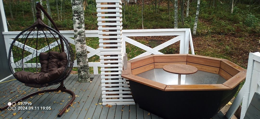 В домиках Вы найдёте все необходимые для проживания удобства, в том числе сауну. За дополнительную плату можно расслабиться в банном чане на террасе.