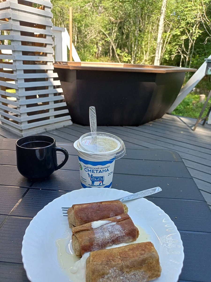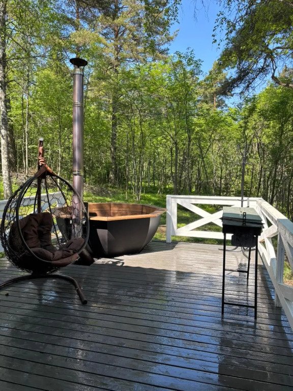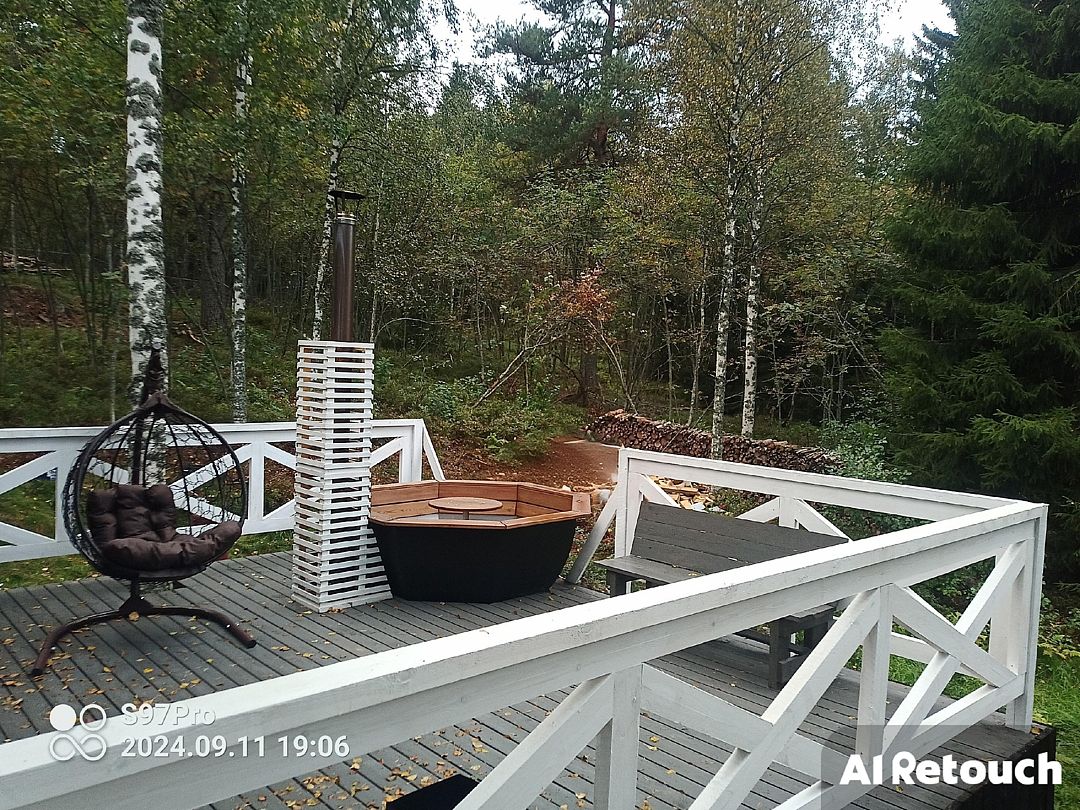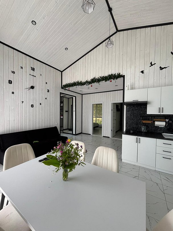 Семейный отдыхДостоинстваВ ДарЭли мы нашли всё,что хотели, и даже больше: расположение в тени леса,но и солнца предостаточно, уютный дом с красивым современным интерьером, удобными матрасами и шторами блэкаут, возможность готовить самостоятельно на газу ( все принадлежности есть) или мангале, отличная проточная вода, сауна, чан, душ с горячей водой, возможность рыбачить и купаться ( до залива метров 200). Нас встретили гостеприимные и дружелюбные хозяева. Но то, что тронуло моё сердце особенно- это возможность отдохнуть во всей этой красоте и комфорте с нашей любимицей Эммой. Спасибо, дорогие хозяева, ещё раз!
