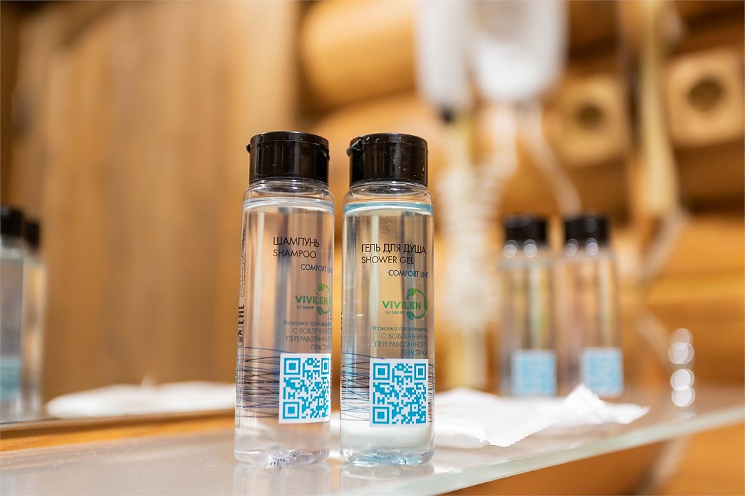 В комплекте предоставляются полотенце, простыня, тапочки, банная шапочка, мыло и шампунь; веник доступен как дополнительная опция.