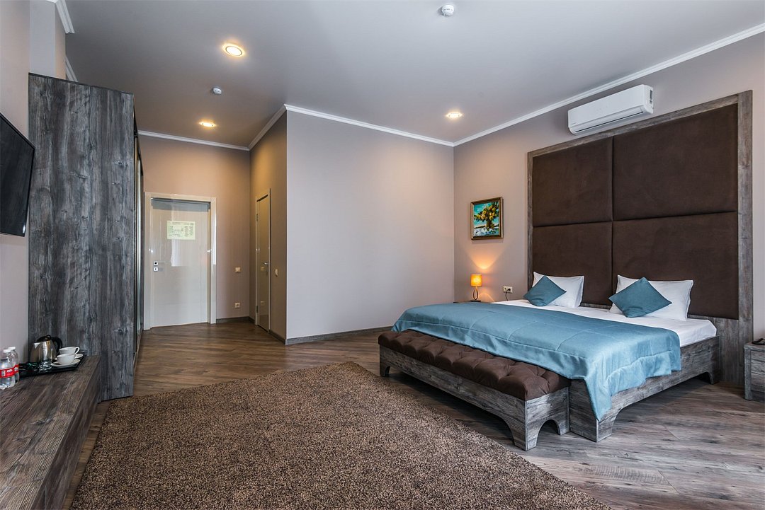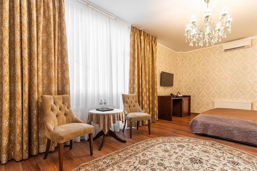 Наполненные светом, просторные, однокомнатные, улучшенные номера в отеле "Усадьба Фамилия" созданы для тех, кто ценит пространство. Большая двуспальная кровать, удобная зона отдыха и просторная ванная комната – всё ради беззаботного отдыха.