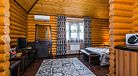 Большие кровати позволяют прекрасно выспаться и набраться сил вдали от шумного города. Деревянный декор стен создает атмосферу тепла и уюта.