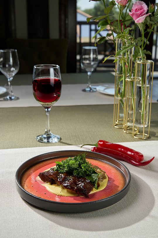Кухня собственного производства обеспечивает высокое качество блюд и позволяет гибко подбирать меню в зависимости от формата события. Для выездных регистраций, фотосессий и дополнительных мероприятий предусмотрена открытая прилегающая территория с пирсом на пруду, где гости могут наслаждаться живописными видами.
