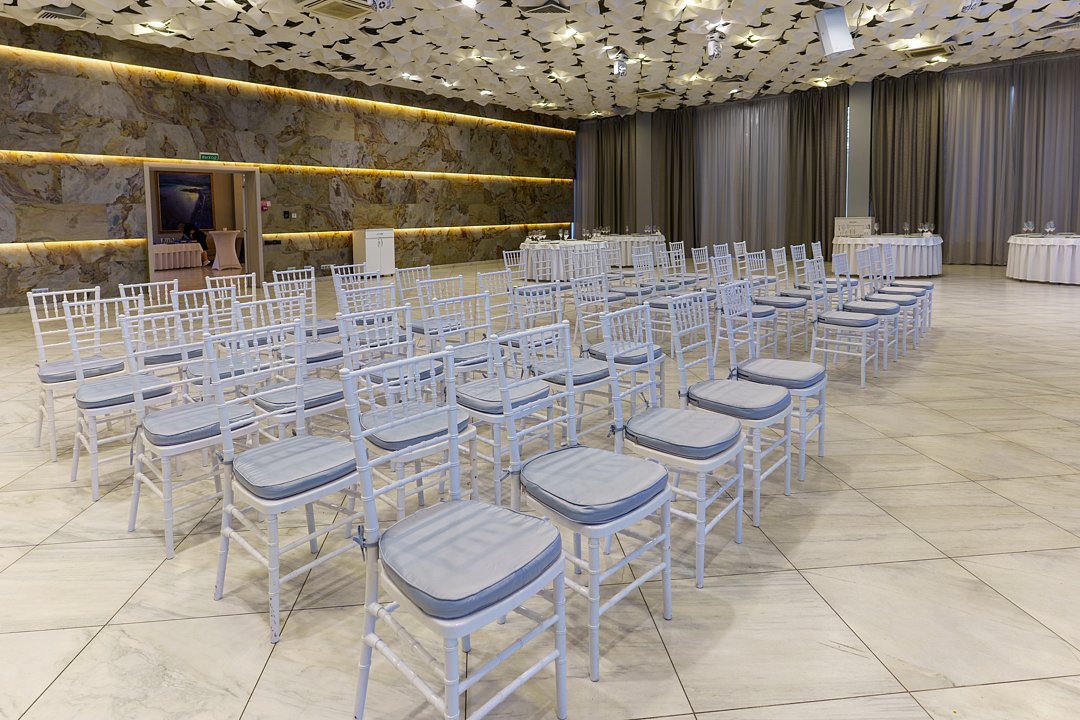 Читать полностьюБольшой конференц‑зал, занимающий около четырехсот квадратных метров, подходит для мероприятий, на которых может присутствовать до трехсот человек. Просторное помещение оборудовано современными LED‑экранами, световым и звуковым оборудованием, а также трибуной для ораторов, что делает его идеальным для масштабных презентаций и публичных выступлений.