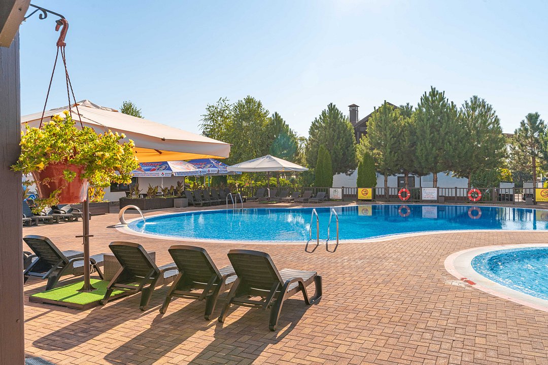 2 взрослых на основном местеБез питанияОптимальный тарифПодробнееВ стоимость проживания включено: открытый подогреваемый бассейн круглый год; детская игровая комната с профессиональным педагогом для детей от трех лет (в праздничные дни и с пятницы по воскресенье, с 10:00 до 20:00); детские игровые, а также спортивные площадки; уборка номера по требованию, смена белья и полотенец, бесплатный Wi-Fi и бесплатная автостоянка.