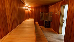 Комплекс располагает просторной парной на десять человек с регулируемым тепловым режимом от 60 °C, хаммамом для длительного прогревания, купелью с минеральной артезианской водой для контрастного закаливания, гостевым залом для дружеских посиделок и широкой верандой с удобными лежаками для отдыха на свежем воздухе.