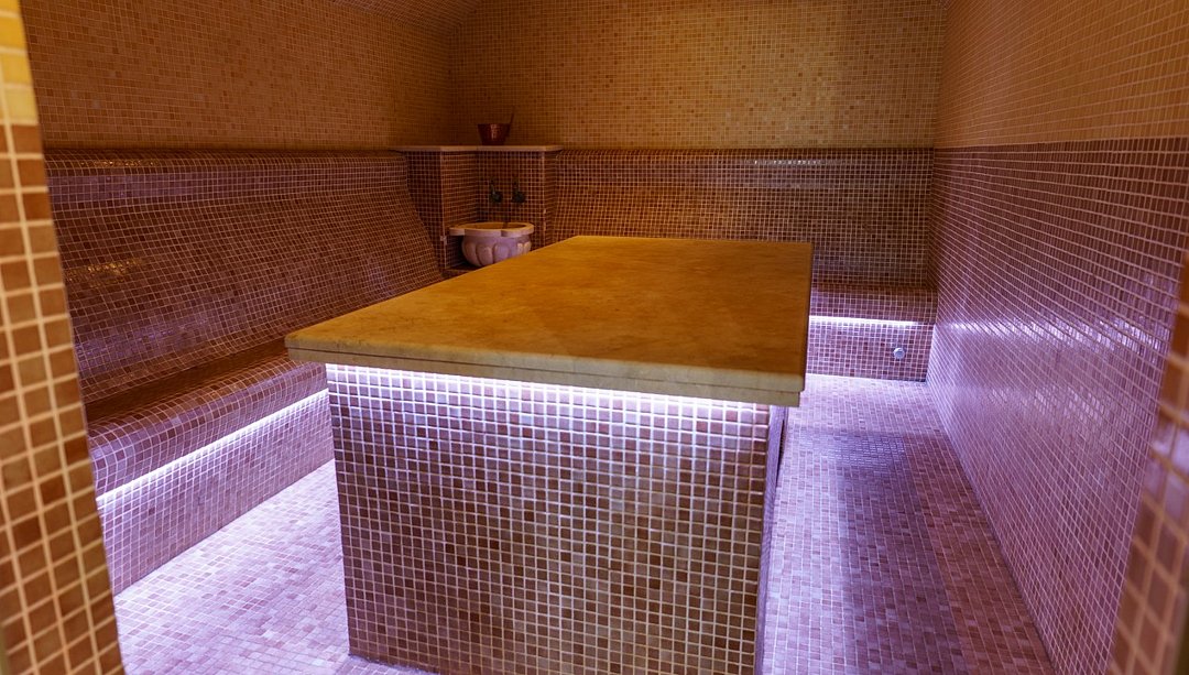 Для тех, кто предпочитает мягкое прогревание, предусмотрен хаммам с влажностью 65–70 % и температурой около 35 °C — идеальная среда для пенного массажа и других спа‑процедур.