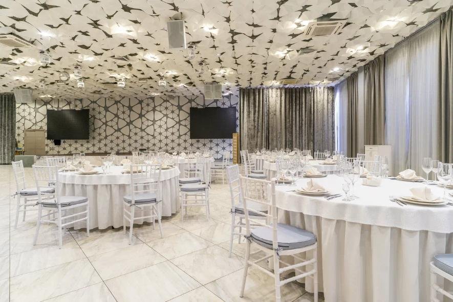 Большой конференц‑зал, занимающий около четырехсот квадратных метров, подходит для мероприятий, на которых может присутствовать до трехсот человек. Просторное помещение оборудовано современными LED‑экранами, световым и звуковым оборудованием, а также трибуной для ораторов, что делает его идеальным для масштабных презентаций и публичных выступлений.