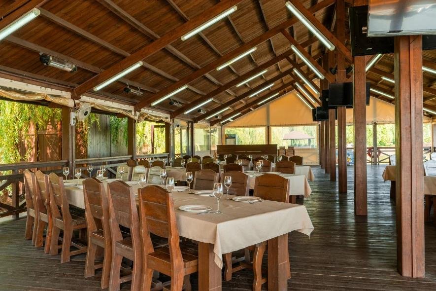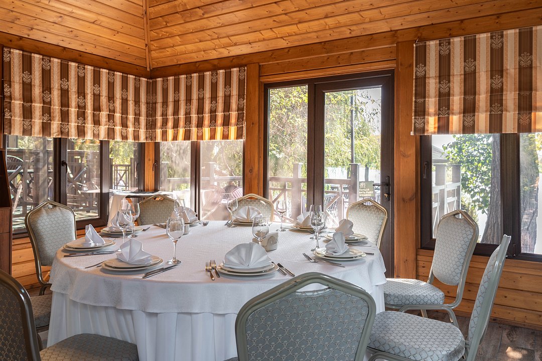 Для ценителей приготовления пищи на огне предусмотрена собственная мангальная зона. Полное обслуживание по меню и возможность аренды пирса позволяют организовать программу мероприятия с максимальной гибкостью. Здесь гости наслаждаются видами на природу, теплом очага и удобством тщательно продуманного расположения.