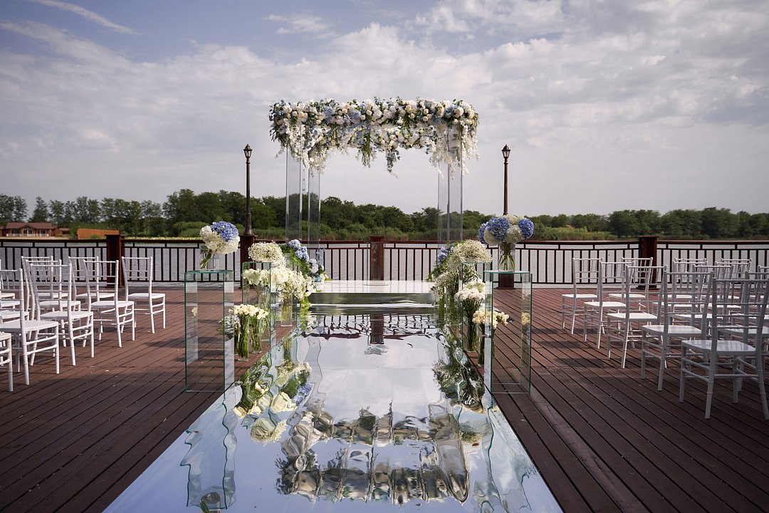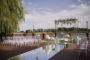 Пирс Романтик — очаровательная открытая площадка на набережной с живописным видом на реку, созданная для выездных регистраций, романтических предложений и камерных праздников. Простор и свежий воздух формируют умиротворенную атмосферу, идеально подходящую для значимых моментов.